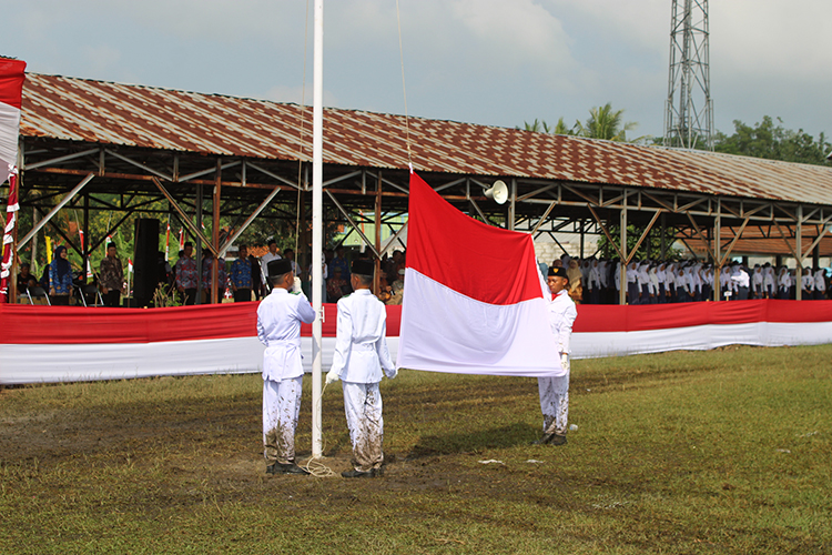 Pasukan pengibar dari tim Paskibra Manggala Jaya Muda SMAN 1 Mangunjaya dengan penuh semangat mengibarkan Sang Merah Putih yang diikutsertai oleh seluruh siswa-siswi dari TK, SD, SMP, hingga SMA dan juga seluruh warga Desa Mangunjaya.